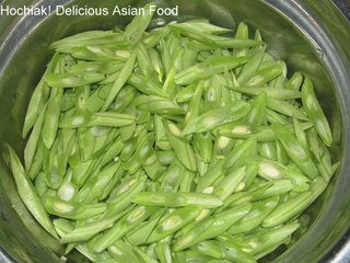Bring water to boil in a large pot. Add 1 teaspoon of salt and 1 tablespoon of palm oil. Add in the siew pak choy and blanch till the leaves turn dark green / cooked. Remove the leaves and set aside.