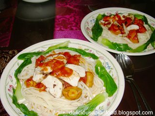 This is my recipe for Linguine with Pan-Fried Chicken Breast and Siew Pak Choy.