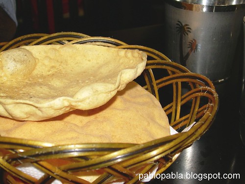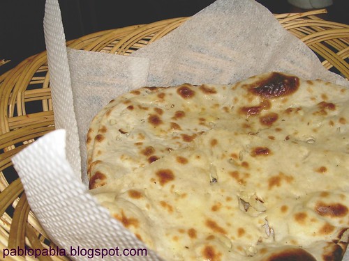 The garlic naan is thin but not baked till it is too crispy. The size is about your average personal pan pizza. The garlic and butter smell is absolutely heavenly and tastes just as great. It does not have the floury taste that is associated with some poor quality naan served at some places and it is as good eaten on its own. (Sounds like Gardenia bread advertisement) But seriously, this garlic naan is worth eating.